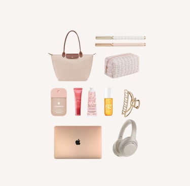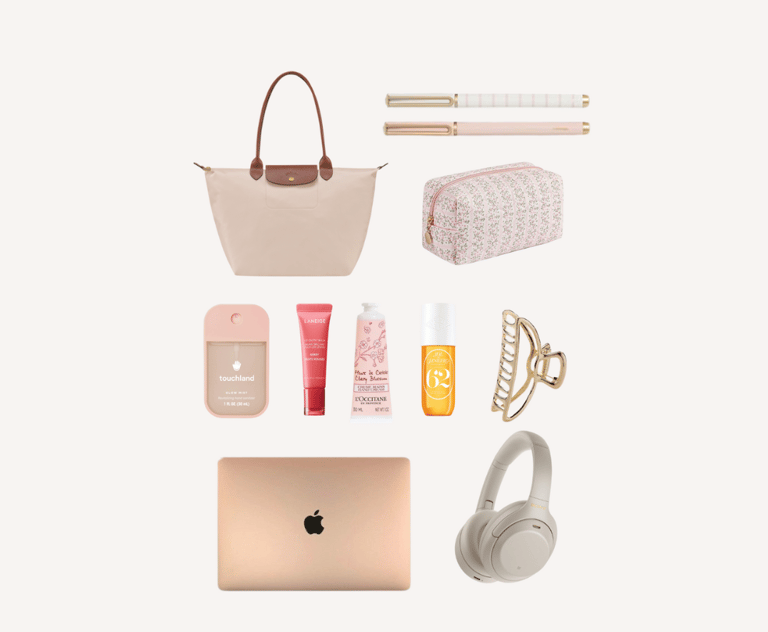 These are the things you’ll grab every day — make sure they’re reliable and comfy to carry. I’ve made it easy for you — all the underlined items in pink are shoppable! Just click on the item names to check them out