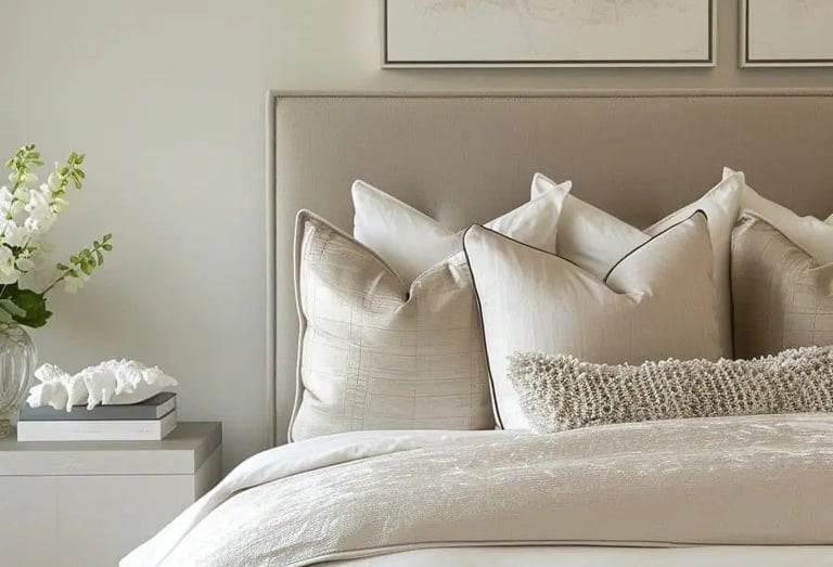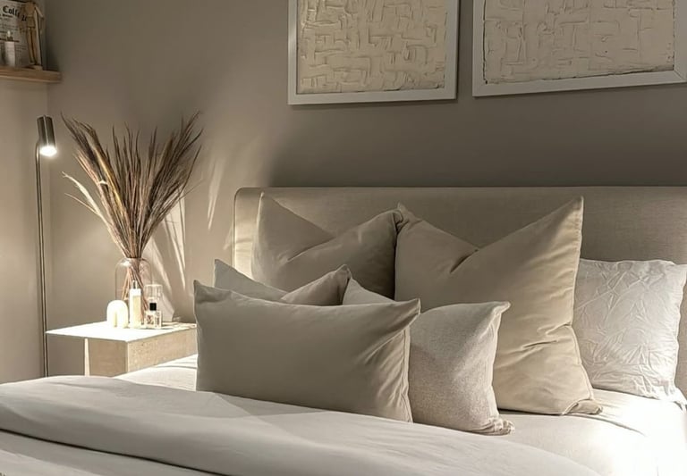 High-end bedrooms often share one thing in common: a calm, cohesive color scheme. Opt for soft, neutral tones like warm whites, greige, taupe, beige, and muted earth tones. These colors instantly add a sense of calm and sophistication.