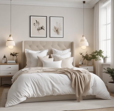 Your bed sets the tone for the entire space. It’s the largest piece in the room, so choosing a quality bed frame—whether minimal, wooden, or upholstered—grounds your style. Once that’s in place, layer soft, breathable sheets like ivory, sand, or warm white in neutral tones. Add texture with a linen duvet, cozy throws, and plush pillows. When your bed feels inviting and looks clean, the whole room comes together effortlessly.