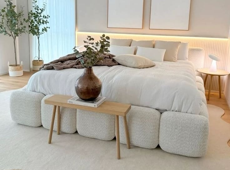 Texture is what brings warmth and coziness to an aesthetic room. Mix and match materials like linen, cotton, and boucle for bedding to create softness that invites relaxation.