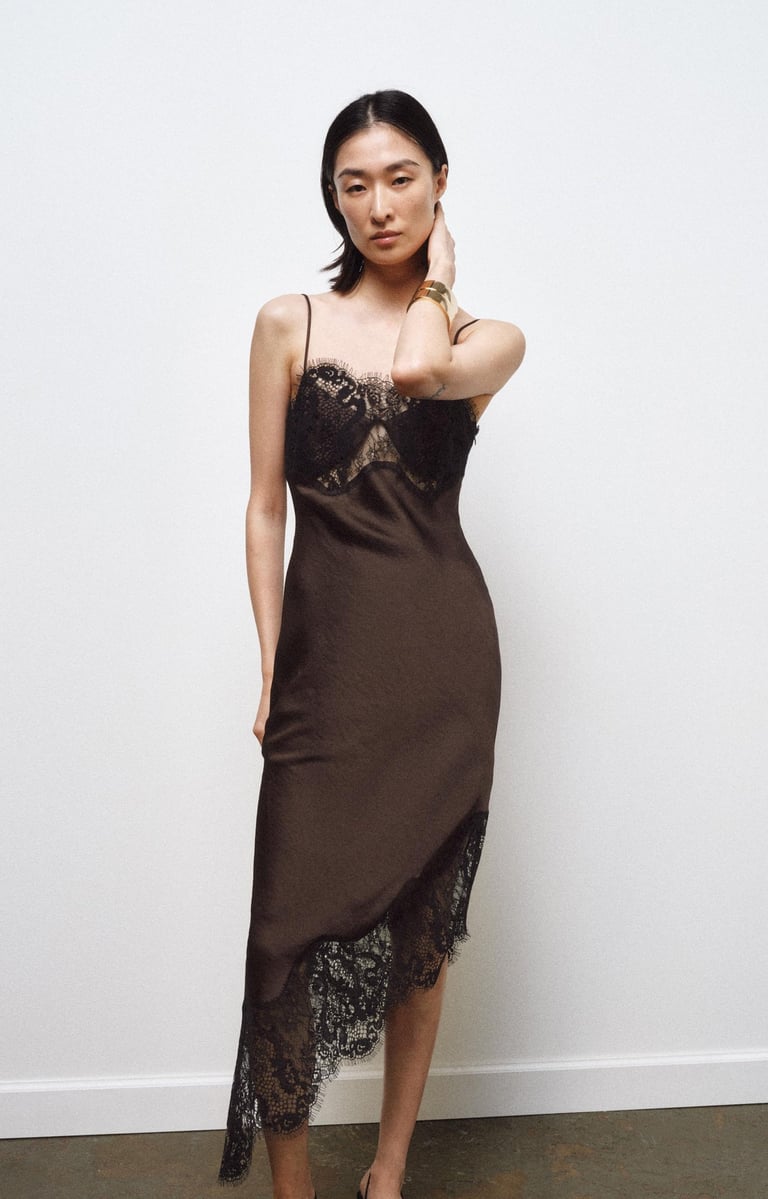 Layering plays a central role. Lace is often placed over opaque fabrics to create depth rather than pure transparency. In other cases, it appears asymmetrically: a lace sleeve, a panel, a partially sheer hemline. These choices make lace feel intentional rather than ornamental. The message is clear: lace is no longer confined to one aesthetic. It adapts.