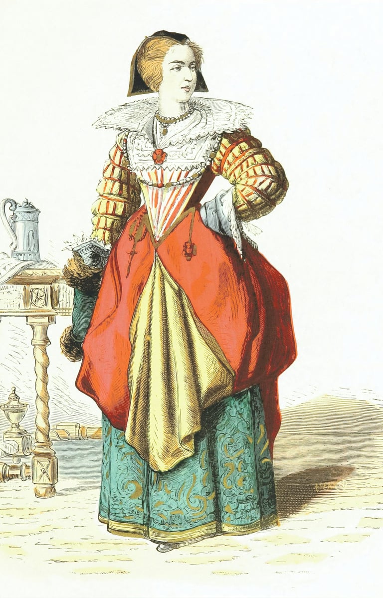 Lace first emerged in Europe during the sixteenth century, though it was only toward the latter part of that era that it gained widespread popularity. Its rise into high fashion truly took shape in the early seventeenth century, when lace became a visible marker of refinement, status, and discipline. In England, lace barely appeared in painted portraits until Queen Elizabeth I brought it into prominence — and even then, it was used sparingly, limited to delicate trims on cuffs and collars rather than full garments. Historical references adapted from A Short History of Early Lace by Ploeg.